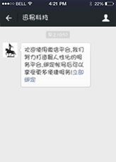 關(guān)注后會自動彈出立即綁定的消息,點(diǎn)擊綁定賬號。